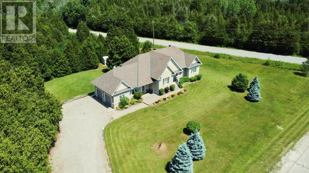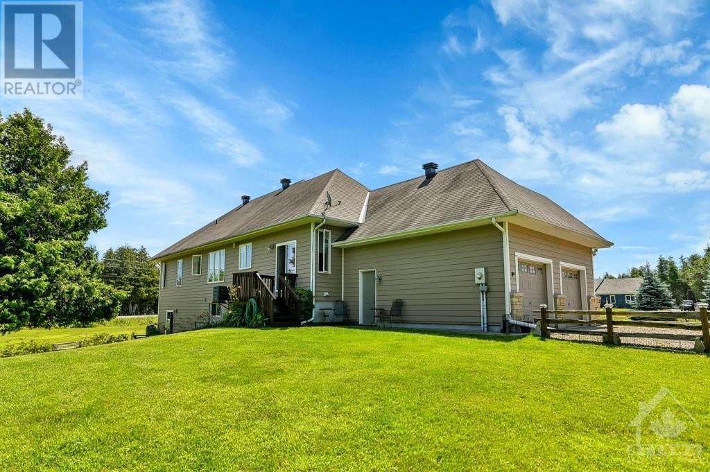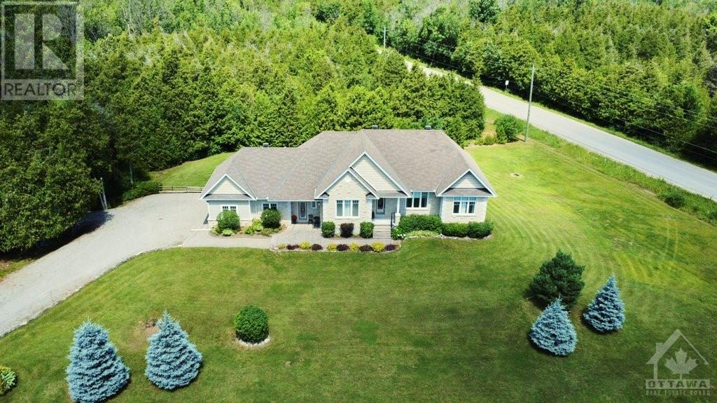 Located in Merrickville Estates this exceptional bungalow has a finished walkout basement and sits on a 2.2 acre treed lot. The property has low maintenance landscaping including an interlock entrance walkway and perennial gardens. On the main floor you will find a bright layout with 3 bedrooms, a large dining area and living room along with a large entrance foyer. The kitchen and eating area lead to a rear deck overlooking the private backyard. The primary bedroom includes a walk-in closet and ensuite bath. A large mudroom area includes access to a partial bath, laundry facilities and two car garage. The lower level includes two more large bedrooms along with room for an office area and a large storage area. The basement has roughed in plumbing for an additional bathroom. Merrickville Estates offers fully paved and well-maintained roads, excellent cellular reception, along with natural gas, underground electrical and Bell Fibe services. Check out the photos and video tour. (id:16400)
