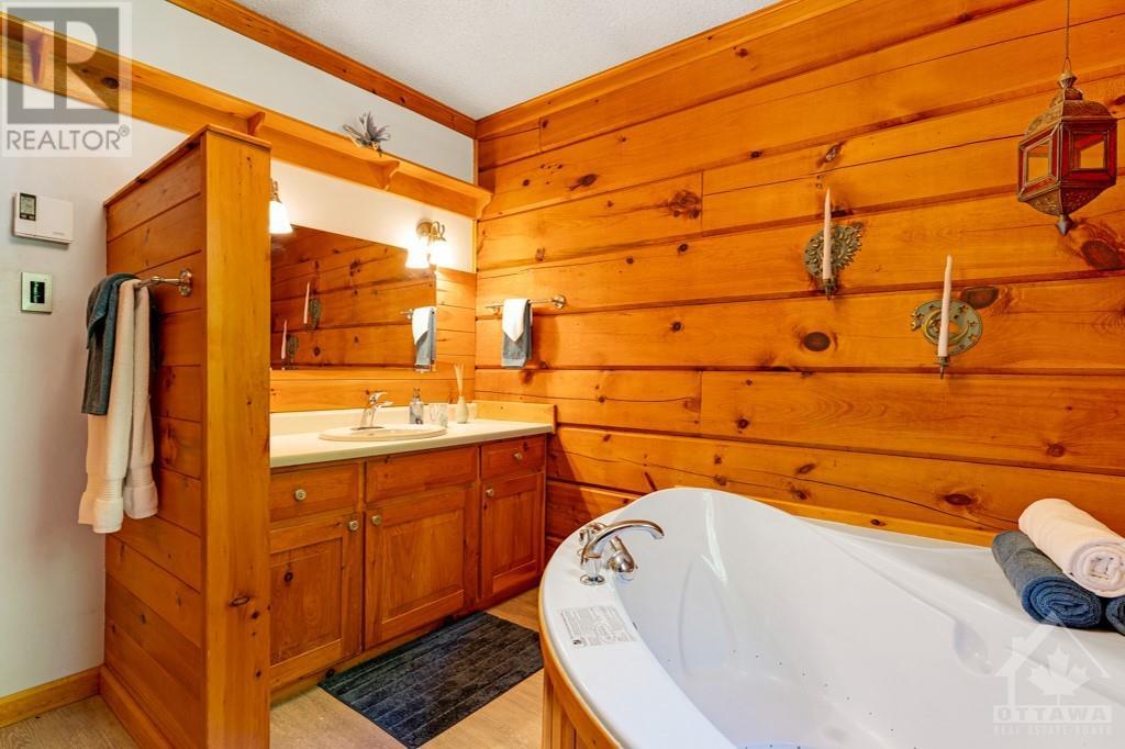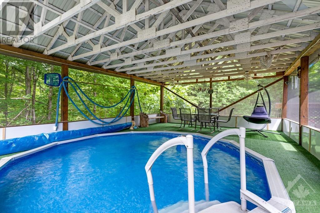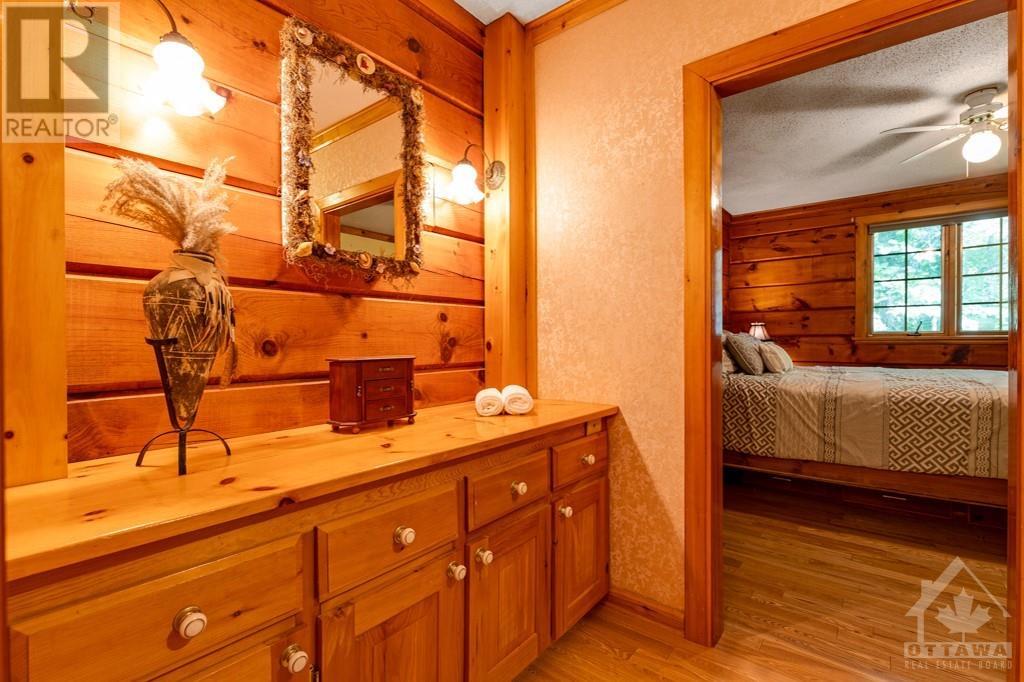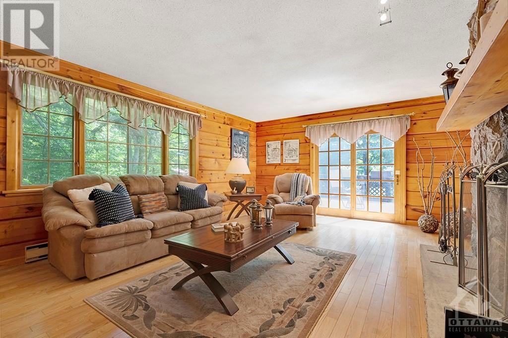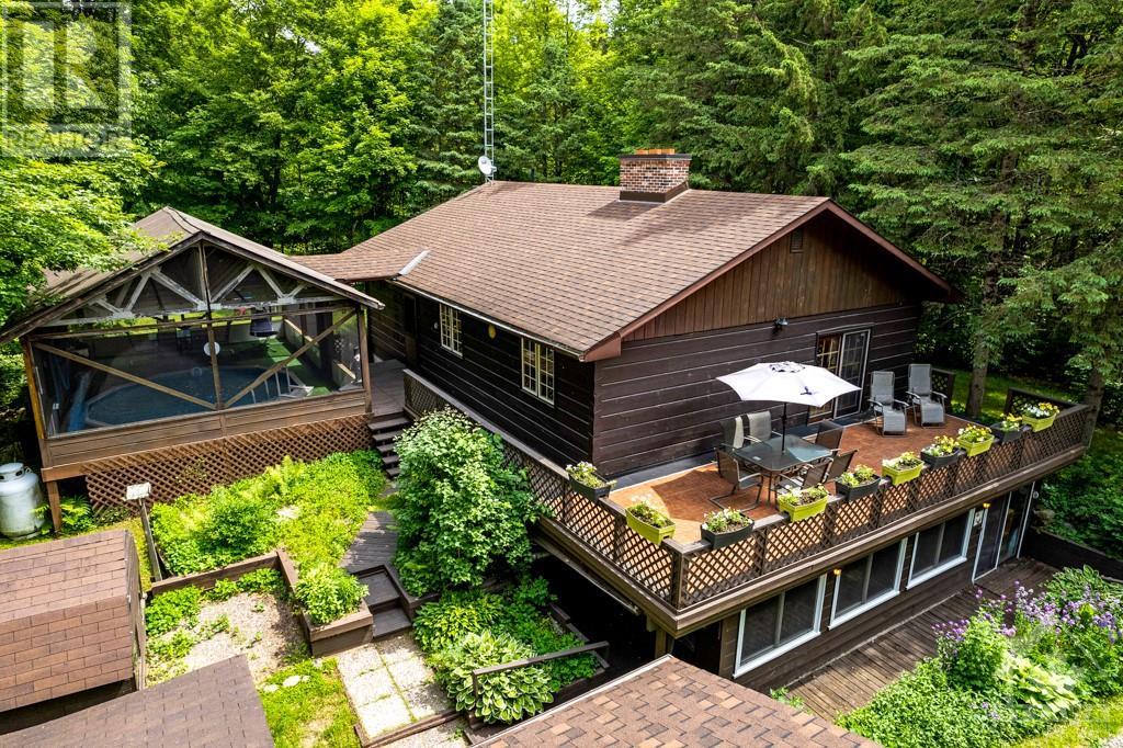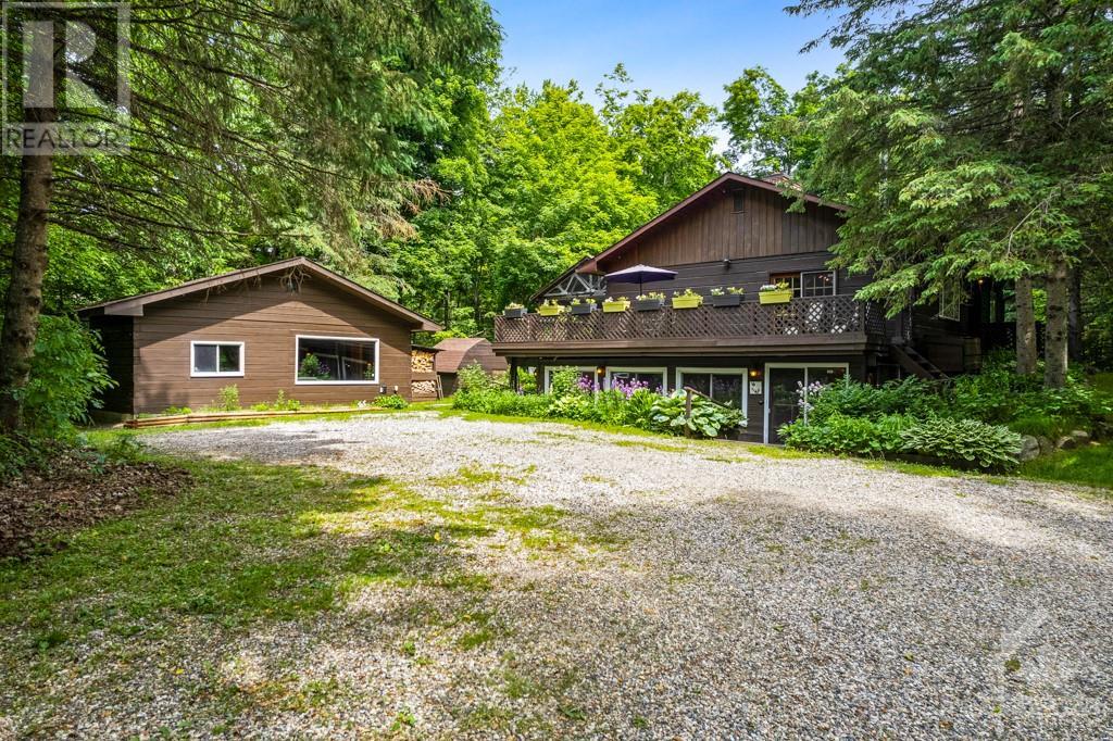 Peacefully private 8 woodland acres with PanAbode log home that blends into its natural surroundings. Plus, detached 22'x24' studio with woodstove and a detached insulated garage-workshop with woodstove and loft. The 3 bedrm, 2 full bath home offers you white bright 8' ceilings, ash hardwood floors and window views of quiet calm. Livingroom has one of two Georgian Bay fieldstone fireplaces. Diningroom Tiffany lamp and exquisite hand-crafted French oak wall unit. Sunny kitchen with extra prep areas. Primary bedroom's walk-in closet has custom fit-ins and cheater door to bathrm with 2-person therapeutic soaker tub. Rear foyer to wrap-about deck that has wonderful enclosed lounging area with heated pool. Lower level familyroom 2nd stone fireplace, wet bar, two bedrms, 3-pc bath, sunroom-office with pellet stove, laundry station and doors to outside. Groomed trails thru enchanting forest. On paved road, with mail delivery & garbage pickup. Hi-speed. Cell service. 10 mins to Carleton Place. (id:16400) Please visit : Multimedia link for more photos and information |