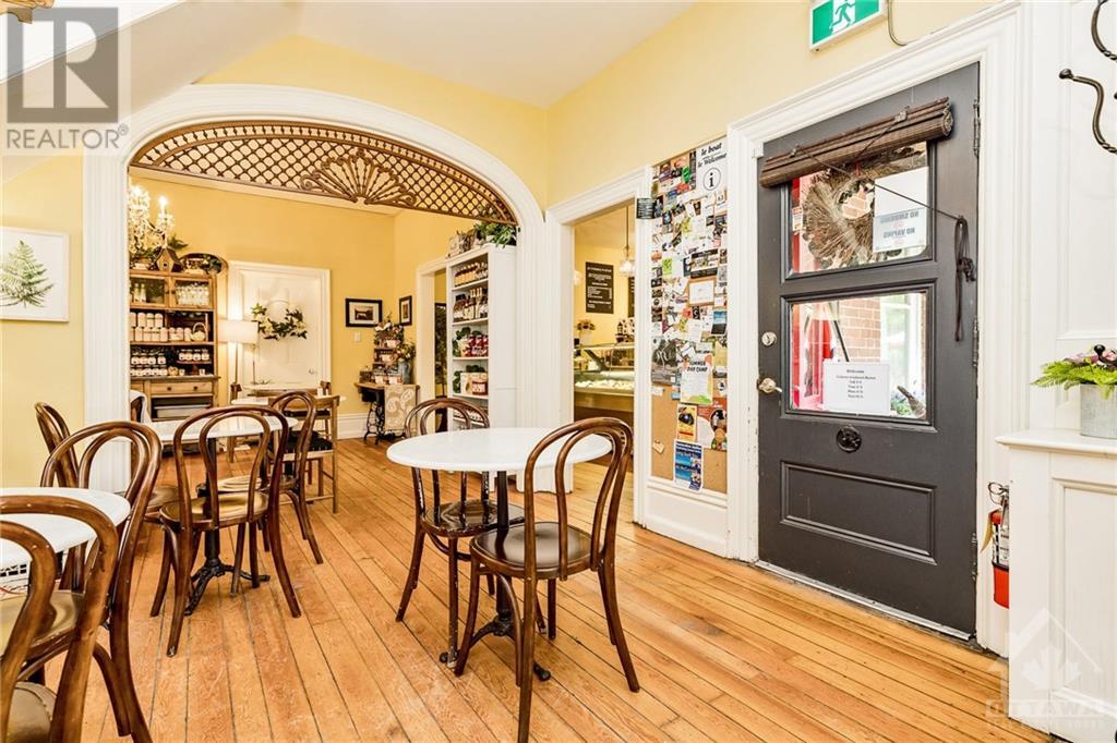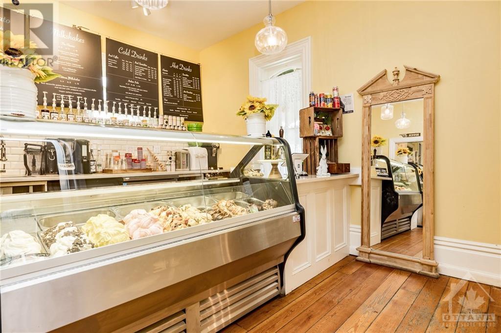 Welcome to 111 Main St E, a stunning commercial property w/ a view of the Rideau Canal, situated in the village of Merrickville, a year-round tourist destination! On a busy foot traffic street in the commercial core, this property is currently being utilized as a successful European Style Gelato Café w/plenty of indoor/outdoor seating! Live upstairs in the beautifully renovated 1 bed/1 bath residence & run your chosen business on the main level; so many business possibilities w/ zoning: office/retail space, potential Airbnb/rental... Should a buyer wish to run a gelato café the seller is willing to negotiate for the purchase of commercial equipment & a buyer could become a wholesale client w/ a new business & seamless opening! Upgrades include: Metal roof, eavestrough, electrical 3Phase, plumbing, two bathrms, residence, prep kitchen, AC, HWT, lighting, water treatment, landscaping, garden irrigation system, back deck, pergola, stone patio & more! Entrepreneurship and lifestyle await! (id:16400)
