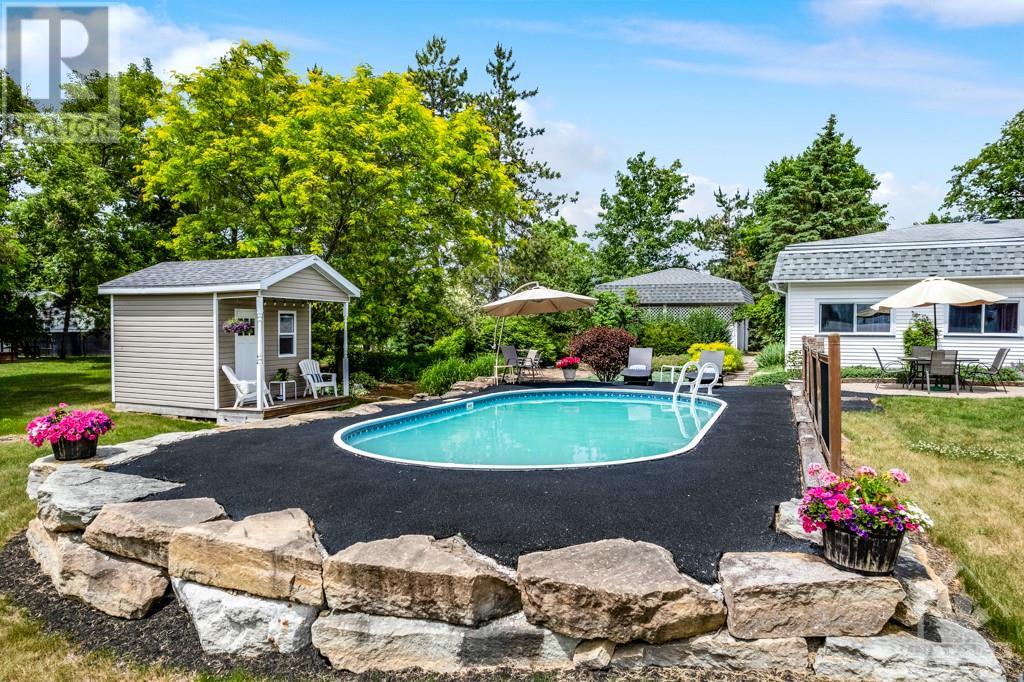 Big spaces, family comfort and century character all offered by this home on 105 farm acres, just 5 mins from Perth. You also have detached garage/workshop, barn, driveshed and machinery sheds. Farm has 85 tillable acres of sandy & clay loam soils. Hay grown for approx 19 years. True four-bedroom home has extra large rooms with deep window sills and high ceilings. Invitingly bright foyer includes closet. Large living room built-in cabinets framing stone fireplace adorned by stone mantle. Dining room open to kitchen with peninsula breakfast bar. Huge family room fits pool table and has patio doors to yard. Four-season sunroom with stone wall and three walls of windows. Extended mudroom endless cupboards and laundry centre. Wonderful in-ground pool and pool house surrounded by perennial gardens. All 105 acres fenced with cedar rail or page wire. Barnyard electric fence. Garage-workshop has hydro & loft. Possibility of lot severance. Hi-speed. Cell service. Garbage pickup. Mail delivery. (id:16400)