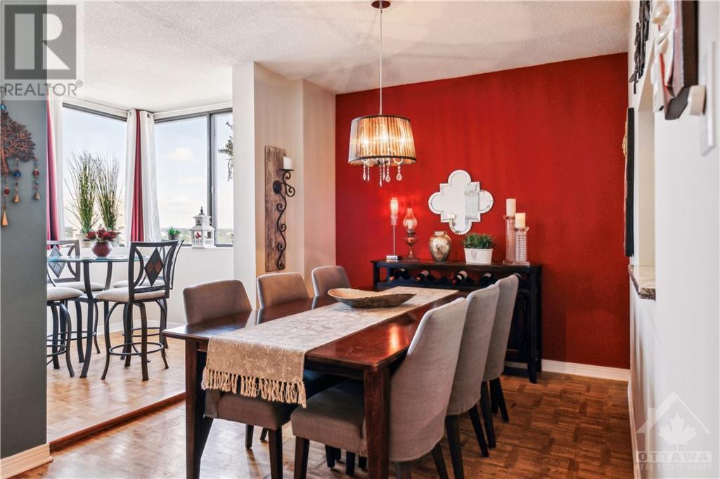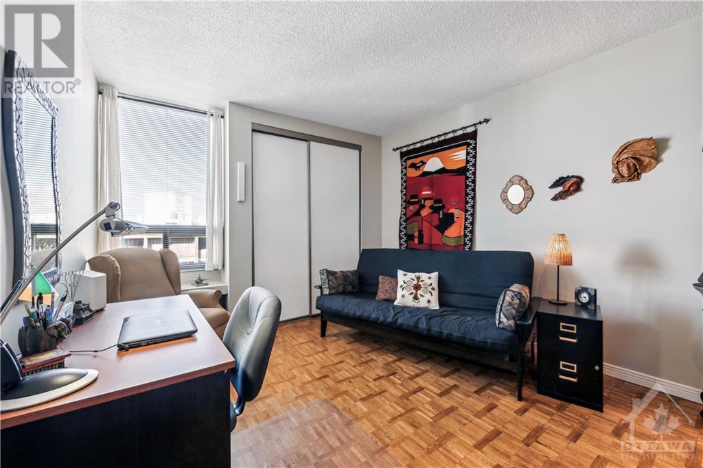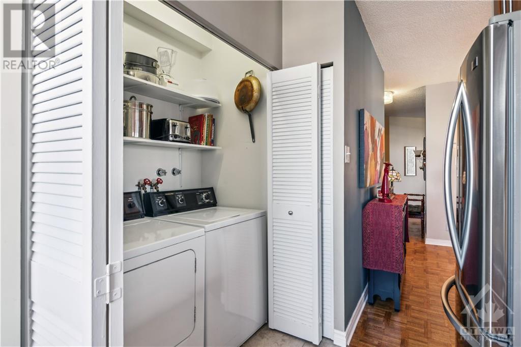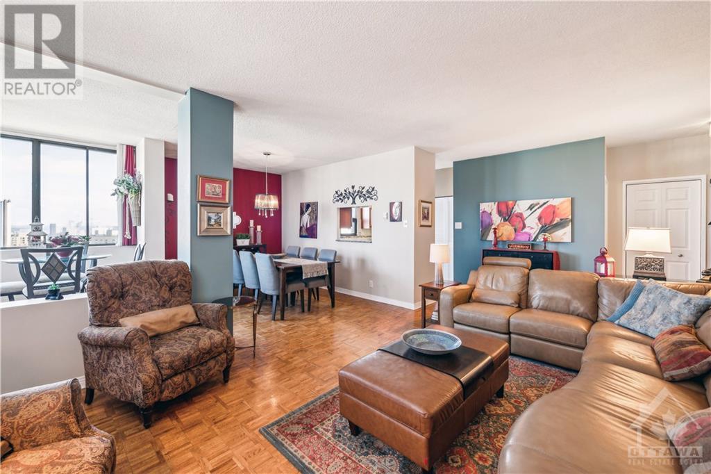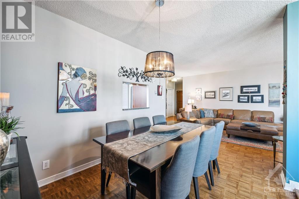 Welcome to 1101-40 Arthur Street! This condo boasts over 1000 square feet of living space with large principal rooms. The living room / dining room with wood burning fireplace is adjacent an open solarium with extraordinary views of the Ottawa River and Gatineau Hills. The updated kitchen features stainless steel appliances, ample cupboards, a granite countertop, and a large window. A convenient powder room is nearby. A corridor offers privacy to the two generous bedrooms. The smaller bedroom is so large it is often used as the principal bedroom, leaving the larger one to serve as an office, den, or family room. Ample closets. This penthouse level suite has higher ceilings. Enjoy amenities like a sauna, library, gym, workshop, and a delightful garden. Hardwood and tile throughout. Located on a quiet side street in West Centre Town in Chinatown, at the top of Nanny Goat Hill. Little Italy, Lebreton Flats, and downtown nearby. In-suite laundry. Underground parking. Ample visitors parking (id:16400)
