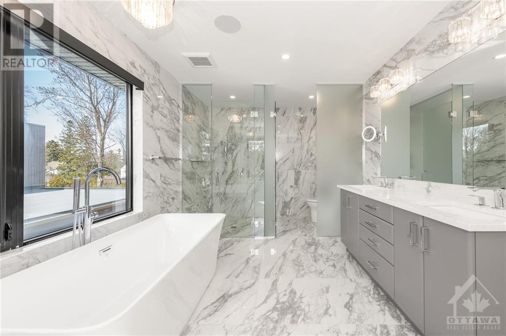 Built in a geographically central location, this home offers both luxury & convenience. 15 mins drive to west/south/east Ottawa. Minutes away from Carlingwood and Merivale shopping centres, as well as schools & parks. Ground floor 1247 sqft, 2nd floor 1387 sqft, & basement 1343 sqft. 9ft ceilings throughout. Granite countertops throughout. Custom cabinets and closets throughout. In-floor heating throughout the basement living areas, powered by water boiler system. Basement has full bathroom, movie theatre room, ample storage & wet bar. In-floor heating in both 2nd floor washrooms. Built-in sound system in all rooms and living spaces. Outdoor camera system. Top of the line smart appliances, such as Dacor gas cooktop. Smart thermostat. Automatic remote controlled blinds throughout. Garage rough-in for an electric car charger. Zero maintenance hybrid fencing. Outdoor gas barbecue connection. Ductile piping for noise reduction from flushing toilets and wastewater. Generlink for generator. (id:16400) Please visit : Multimedia link for more photos and information |